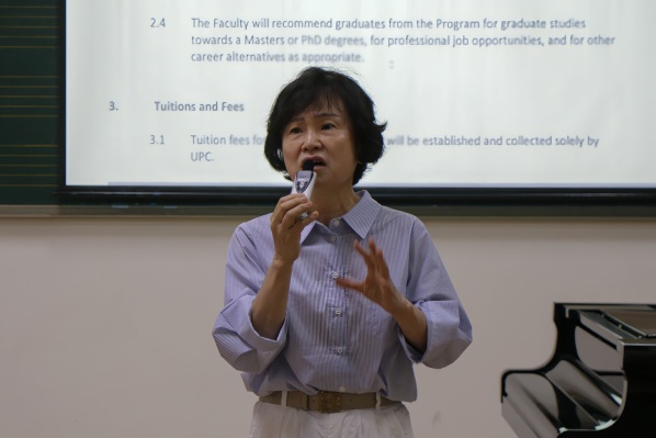 会议伊始,刘清向与会人员介绍出席会议的教师和会议主讲人,引导学生增强规划意识、提高专业知识水平、开阔国际视野。据介绍,“2+2”项目即学生分别在国内、国外学习两年,之后可以获得双学位。随后,目前在韩国祥明大学攻读博士学位的全讯2013级音乐系优秀毕业生佘慧瑛分享了自己在韩国留学的经历和心得体会,她表示,留学韩国后,她的生活、学习、专业技能等各方面都有所提高。从项目合作背景引入,朴明淑教授详细说明了韩国祥明大学的发展历程、学校理念、学校优势、入学的硬性要求、可选专业以及奖学金设置等方面。韩国祥明大学生活环境优美,配套设施齐全。此外,祥明大学师资力量强大,音乐系是学校最好专业之一,他们为学生打造专门性音乐养成计划,为学生出国深造进行指导,学生在石大学习音乐理论,而在祥明大学可以补充学习到许多实际的知识。