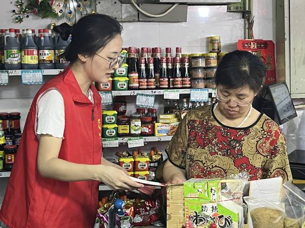 成员向商贩进行宣讲 王铭萱摄