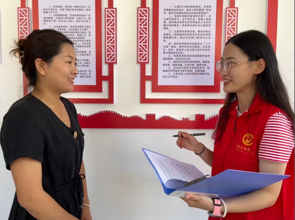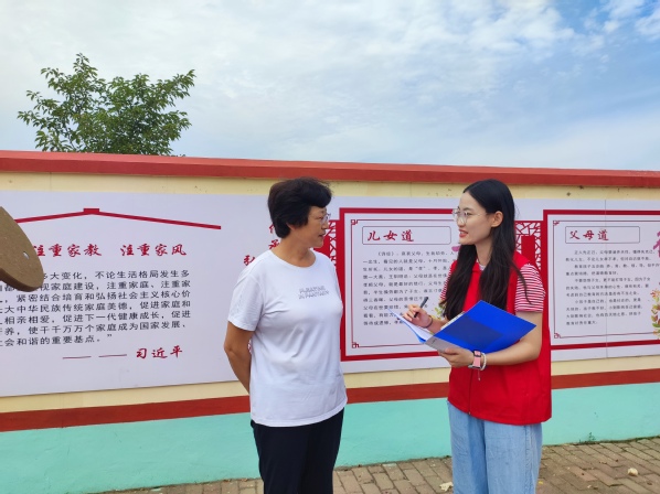 在随机街访时,实践队采访了不同年龄阶段的多名村民,与他们交流反诈骗、消费者权益保护、禁毒等领域的知识,问询了他们日常纠纷解决办法、运用法律解决问题时遇到的困难等方面的情况,同时,村民们积极抒发了对近年来村庄法治建设的想法与感受。
