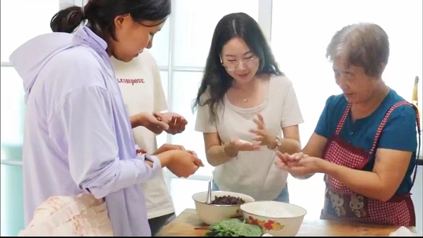 “满族人以面食为主要的日常主食,食物多具有酥、粘、酸、凉四个特点。满族食用谷类有玉米、粟、麦、高粱等十余种,这些谷类是面食的主要食材,可以用其制作成多种美食,饽饽就是其中之一。除此之外,不同的节日场合满族人民也会准备不同的美食以待宾客。”在孙校长的介绍中,实践队员对满族食物有了更深入的了解。在观摩学习孙校长夫人制作苏子叶饽饽后,实践队员跃跃欲试纷纷上手制作美味,小小的餐桌上充满欢声笑语。随后实践队员又跟着孙校长制作了豆面饽饽、皮冻等满族特色小吃。“一次满族之行,不仅体验了丰富多彩的满族文化,更加感受到了满族热情好客的风土人情。”实践队员孙熙谌感慨说。