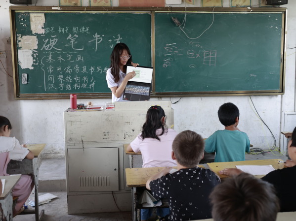 支教队员邢序涵教授硬笔书法课程 张雅慧摄