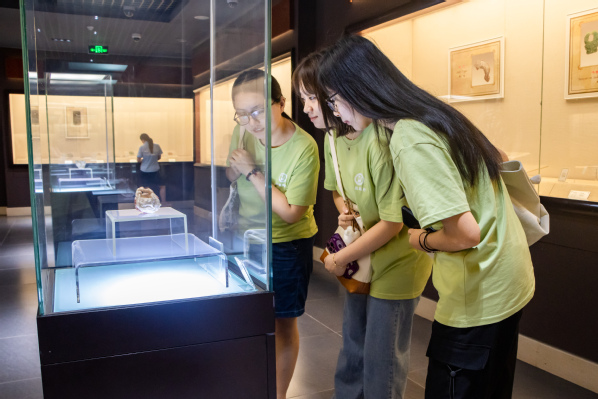 走进莒州博物馆,贯穿博物馆上下三层的巨大浮雕石映入眼帘,其上雕刻着远古神话,古朴壮观的浮雕让队员感受着莒文化的厚重与庄严。自历代石刻厅始,队员们拾级而上,依次走过刘勰纪念馆、文明曙光厅、莒国春秋厅、书画精粹厅、毋忘在莒厅等,遍览如群星荟萃的文物、了解博大精深的莒文化。