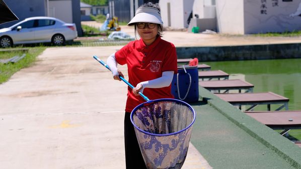 项目负责人在现场介绍,在宝山镇党委和镇政府的大力帮扶下,神农渔业综合体建设进展顺利。由于养殖的墨瑞鳕进口于澳大利亚淡水区,对于水质有严格的要求。神农渔业依托宝山镇良好的生态环境投入运营。该综合体集养殖,垂钓,餐饮,观光等于一体,给游客打造了丰富的游乐项目,实践队员们也亲身体验了钓鱼的乐趣。