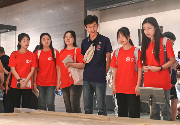 指导老师同实践队员们研究孔子博物馆内的展品 王一龙摄