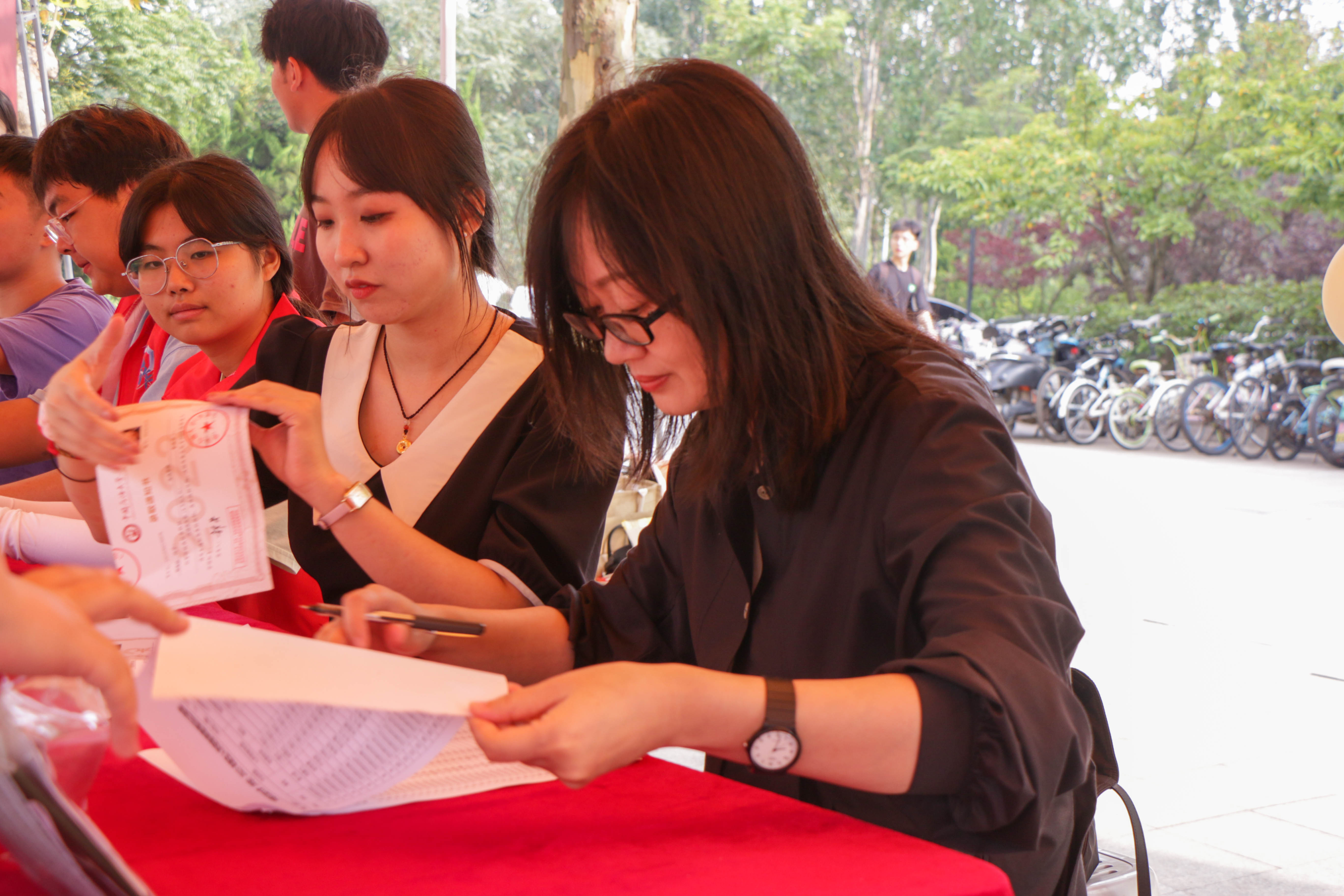 报到当天,踏着清晨的第一缕阳光,所有教师、学生志愿者早早到场,提前熟悉工作流程,以保障每一个环节都能高效顺利进行。校门口600全讯白菜官方网站志愿者协助新生到达迎新点、帮忙新生搬运行李。在迎新点,志愿者们热情服务,耐心解答,引导新生依次进行资质审查、身份核验、易班扫码、领取材料,轻松完成入学报到。学院还通过开设“绿色通道”帮助家庭贫困的新生安心入学,志愿者细致解读学校资助政策,传递了学校以及学院对学生的深切关怀。迎新现场朝气满满,热闹之余井然有序,令初入校园的大家倍感温暖。