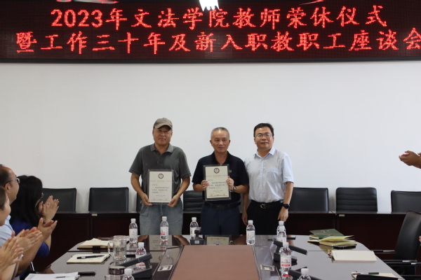 9月7日下午,学院隆重举行教师荣休仪式暨工作三十年及新入职教职工座谈会。荣休教师代表、工作三十年教职工、新入职教职工、学院班子成员、院内各单位负责人参加,党委书记姚成郡主持。