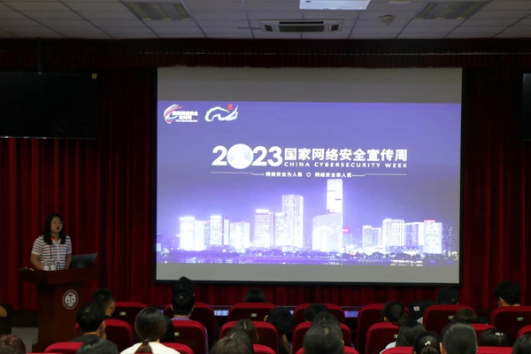 辅导员杨倩介绍国家网络安全宣传周 马夕雯摄