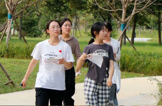 定向越野是培养团队意识,展现军训成果的重要项目。下午,文法七连怀着期待开始了定向越野项目,本次定向越野以荟萃广场为起点,共设16个打卡点,限制70分钟,要求学生三人一组,自行规划路线完成任务。伴随一声令下,各小组依次出发,不畏骄阳心似火,文法学子手持地图信心满满,穿梭在校园内。识图、用图、规划、合作,文法学子在一次次探索中,学会了分工合作,锻炼了自身的识图用图能力,也同时认识到军训的重要性。