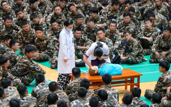 随后,学生们在教官的带领下回到了训练场。他们收回内心的兴奋与激动,以严肃认真的态度迅速投入训练之中,“齐步走”“正步走”“军体拳”,学生们在用标准的动作在教官的口令声中结束了今天的训练。