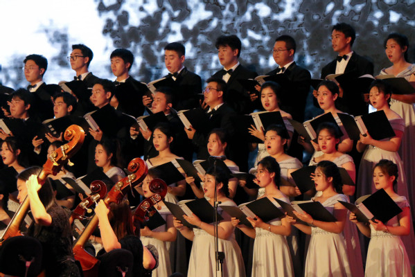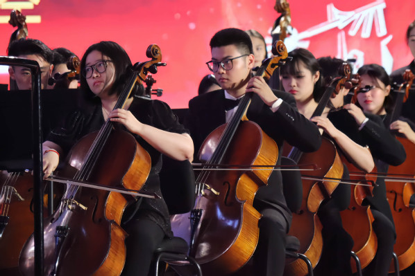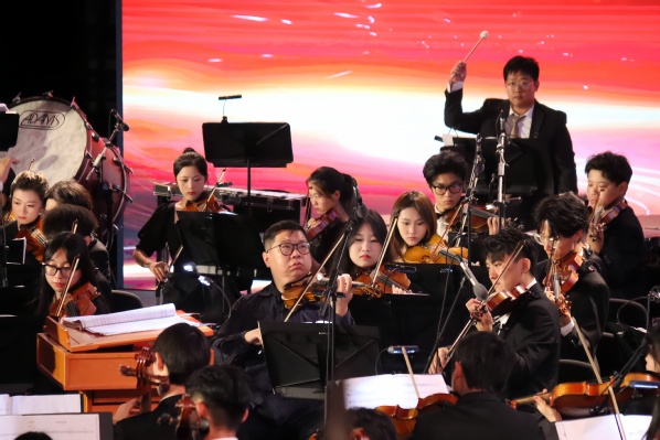 “几代人的拼搏努力,几代人的薪火传承,几代人的前赴后继,几代人的热血生命。”伴随着磅礴恢宏的乐声,建校70周年交响音乐会在《走向辉煌》乐章中拉开帷幕。1953年,新中国第一所石油高等学府的建校历史从北京郊外名为“九间房”的小荒村开始,《情系九间房》乐章将时间倒回70年前,一幕幕厚重的历史场景,伴随音乐逐渐浮现;为服务国家能源行业,学校后迁至黄河入海口,华东石油学院在东营盐碱地拔地而起,《荟萃湖畔》乐章将独属于石大人的东营记忆,以悠扬的乐声娓娓道来;《拥抱蔚蓝》乐章将时间推进到青岛办学时期,唐岛湾畔阵阵海风拂动每位石大学子的心;讲堂群的铃声、逸夫楼的钟声随着《莘莘学子》乐章的演奏,不断勾起校友们的青春回忆;在《师者风范》乐章,石大教师俯首耕耘、老骥伏枥的身影愈发鲜明,他们守得住清贫、耐得住寂寞,崇尚学术,坚持真理,对自己的事业爱得真挚;《巍巍钻塔》乐章展现一代代石大学子头顶青天、脚踏荒野,为祖国能源事业奋斗在油气田第一线的时代风采;最终章《继往开来》诉说着全体师生校友对石大建校70周年的美好祝愿和对学校未来前景的无限期望。