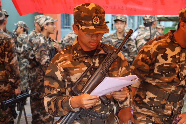 正在军训的新生同学积极回答问题 刘佳怡摄