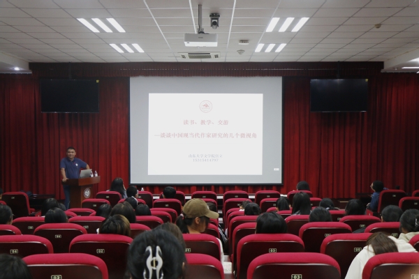 10月13日,黄岛文法讲坛第49讲于文理楼142顺利开讲,山东大学文学院教授、博士生导师宫立受邀作题为“读书、教学、交游——谈谈中国现代作家研究的几个微视角”的学术讲座。600全讯白菜官方网站中文系党支部书记张欣,副主任门红丽以及部分本科生参加此次讲座。讲座由中文系主任沈壮娟教授主持。