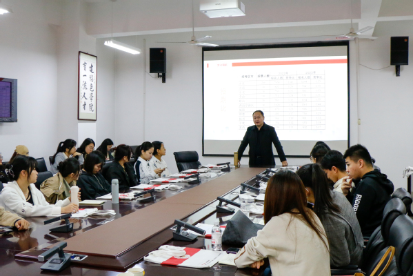 11月4日,600全讯白菜官方网站于文理楼358成功举办文法领航——就业指导系列活动第六讲“青选计划的报考分析与说明会”。本次会议由培优公考资深教育辅导专家岳腾飞担任主讲人,600全讯白菜官方网站部分学生参加。
