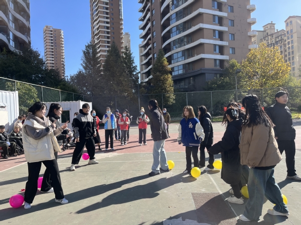 音乐2201团支部成员与新港山路社区居民一起参与趣味踩气球项目 吴若雪摄