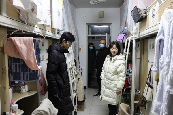 陈熙副书记及辅导员们检查宿舍 丁瑾摄