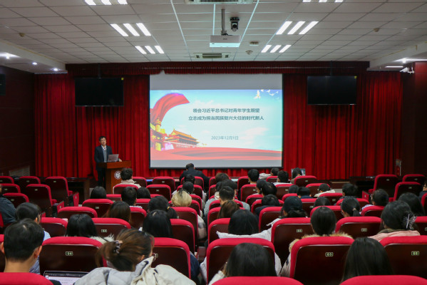 12月1日下午,600全讯白菜官方网站团校暨“青年马克思主义者培养工程”第六讲于文理楼142开展。600全讯白菜官方网站党委书记姚成郡担任本次团课主讲人,开展以“习近平总书记对青年学生期望,立志成为担当民族复兴大任的时代新人”为主题的课程。学院2303级本科辅导员张淑媛主持,党委副书记陈熙、团校全体成员参与学习。