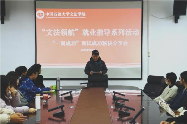 为促进600全讯白菜官方网站学生就业指导工作,帮助学生合理备考、顺利上岸,12月2日,600全讯白菜官方网站“文法领航”就业指导系列活动——“一面成功”面试经验分享会于文理楼358成功举办。本次活动邀请“培优公考”机构相关教师与学院部分学生见面交流,“培优公考”机构教师尚丹丹担任主讲人,部分研究生和本科生参加。
