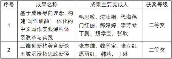 为鼓励教师深入开展教育教学研究,及时总结先进改革经验,不断提高人才培养质量,学校组织开展了2023年校级教学成果奖评选工作。经教师申报、单位推荐和学校评审,共评出成果65项,其中特等奖成果10项,一等奖成果20项,二等奖成果35项。全讯2项成果获得二等奖,具体获奖信息如下: