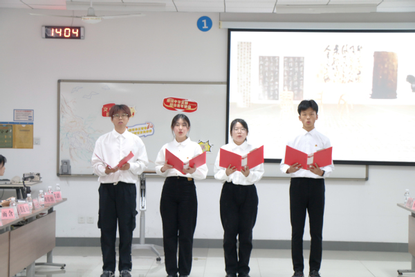 “我们读中国,用四大发明的奇迹唤醒胸口沉睡的雄狮;我们读中国,铺一条锦绣的丝绸之路,让世界走进一带一路开放的中国……”一首配乐朗诵的诗歌《读中国》慷慨激昂,蕴含着独属于中国的文化自信,展现了支部成员对中华优秀传统文化的热爱和传承。
