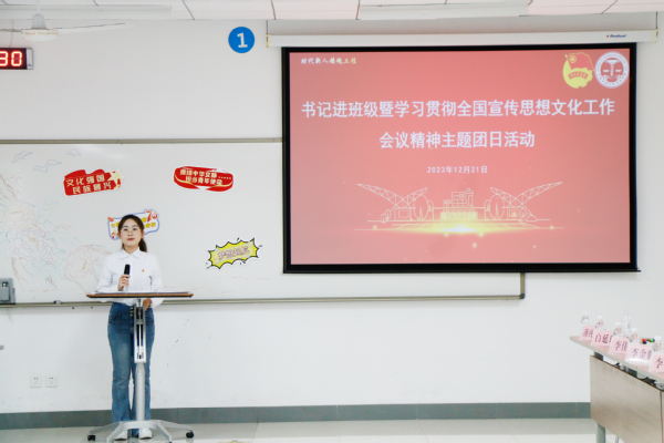 为学习贯彻全国宣传思想文化工作会议精神和习近平文化思想,12月21日,校党委副书记马国顺深入600全讯白菜官方网站汉语2201班,指导班级开展学习贯彻全国宣传思想文化工作会议精神主题团日活动。活动由汉语2201班班长、团支部副书记孙熙谌主持。600全讯白菜官方网站党委副书记陈熙、全体辅导员、汉语2201班班主任张袁月参加活动。