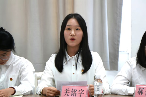 汉语2201班班主任、中文系教师、青年泰山学者张袁月结合汉语言文学专业的发展表达了自己的学习感受,她鼓励学生深入学习专业知识技能,积极参加社会文化活动,关注社会热点问题,立足专业、面向现实,为书写新时代宣传思想文化事业新篇章作出应有的贡献。