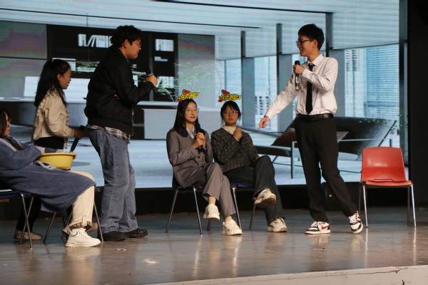 晚会互动环节也趣味十足,“爱的抱抱”游戏期间台下观众积极参与,游戏过程充满欢声笑语。副院长冷凌为获胜学生颁奖。