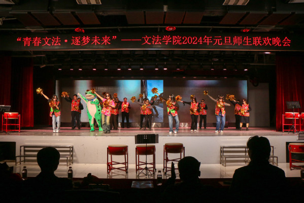 一路欢歌,一路笑语;一路憧憬,一路欣喜。怀着美丽的憧憬,带着新年的期盼,在序幕《张灯结彩》的表演中,晚会第一篇章正式开始。法学2301班带来的集体舞蹈《舞动青春》紧跟时代潮流且花样频出,活力四射的舞蹈充分展现出文法学子积极向上的精神面貌,赢得场下观众阵阵喝彩。
