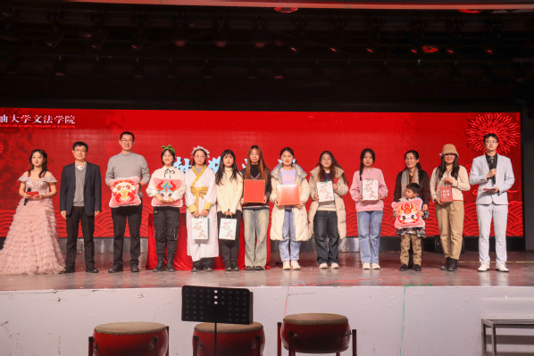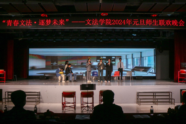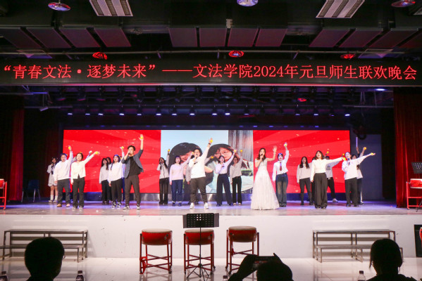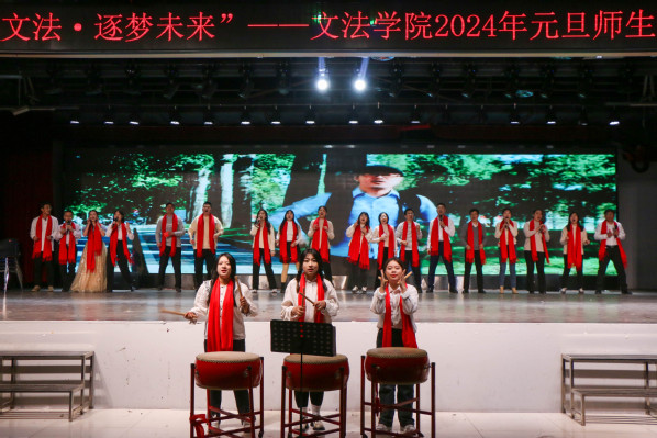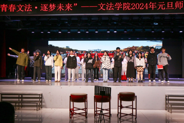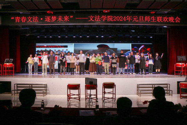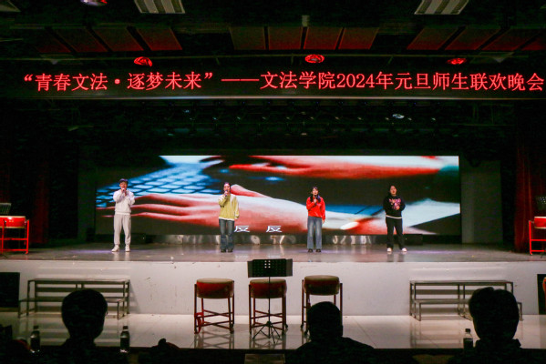 除现场节目外,离校的文法学子也以视频形式为学院师生献上元旦祝福。位于老挝、泰国从事对外汉语教学的研究生,以及前往贵州、内蒙科左后旗支教的文法学子离校千余公里依然不忘母校,在元旦晚会之夜为全体师生献上了最温馨的祝福。