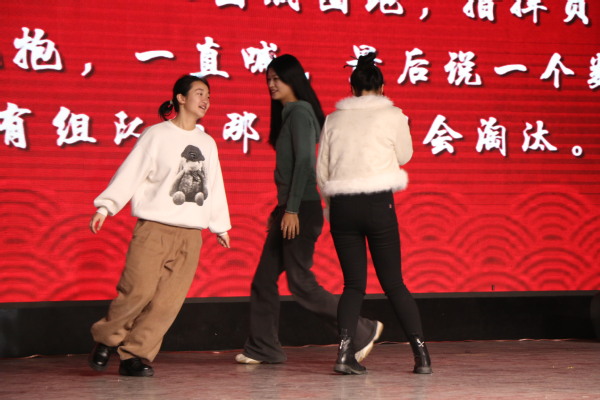 接着出场的是汉语2302班带来的小品《包饺子》,小品语言诙谐,生动有趣,“汗流浃背了吧”“包饺子”“我嘞个豆”等热梗的加持,更使得小品妙趣横生。之后所有人共同合唱《相亲相爱一家人》展现了汉语2302班的团结友爱,情深意重。