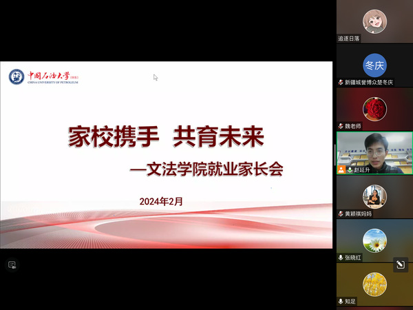 新学期伊始,为了更好促进2024届毕业生就业,进一步加强家校沟通,2月27日,600全讯白菜官方网站召开了“家校携手,共育未来”线上就业家长会。辅导员赵延升和部分2024届毕业生家长参加会议。