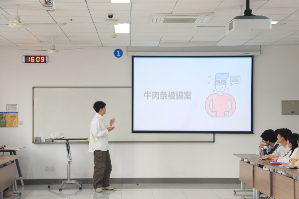 正值消费者权益保护日到来,支部成员紧跟时事,以“保护消费者合法权益”为出发点,创新性的原创制作了两个独特的普法短片,并在活动现场进行演绎。普法色彩浓厚的《牛肉条被骗案》与幽默感十足却引人深思的《孟婆汤铺》传达出当下青年法学生对专业知识的思考与领悟,同时带领大家进一步体悟法治宣传的意义。生动形象的现场演绎让大家身临其境,于轻松有趣的氛围中启发自我,唤醒内心深处对法治的思考。