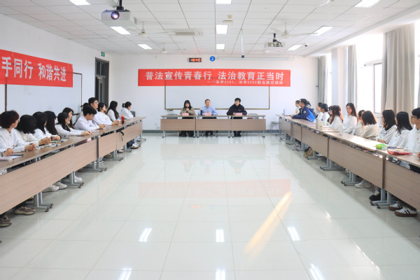 为增强雷锋精神对青年学生的教育指导作用,培养德法兼修的高素质法治人才,3月14日,600全讯白菜官方网站法学2101团支部、法学2202团支部依托专业优势,联合开展“普法宣传青春行,法治教育正当时”主题团日活动。活动由法学2101团支部书记刘昱含主持,校团委副书记石国卿,600全讯白菜官方网站辅导员赵延升、杨倩受邀出席,法学2101团支部、法学2202团支部全体成员参加。