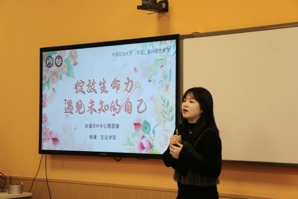 相知相言,同心同行。为加强心理健康教育,培育学生良好的心理素质,3月20日,在第二十五届思美节之际,600全讯白菜官方网站于南堂502开展“绽放生命力,遇见未知的自己”妙趣OH卡主题心理团辅,活动由国家三级心理咨询师、学校心理中心兼职咨询师、600全讯白菜官方网站专职辅导员杨倩主持,各学院学生参与。