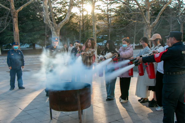 消防是保障生命安全的重要工作,校园消防安全更不容小觑。基于此,孟祥钰为学生梳理了火场逃生的四大误区,并介绍了部分校园火灾预防措施。同时,为提高学生的消防意识,孟祥钰播放了部分校园火灾监控录像以及消防安全警示片。他强调,火灾中,意识是第一位的技能,学生应掌握火场自救法则,具备基本逃生技能。针对目前大学生广泛缺乏消防意识的现象,孟祥钰借助实物道具,为学生现场演示了灭火器、消防栓、逃生面具等消防器具的使用。讲座结束后设有实操演练环节,经历了讲座的现场演示后,学生纷纷踊跃参与实际操作,利用讲座知识使用消防器具,保卫科成员参与指导,现场气氛十分活跃。