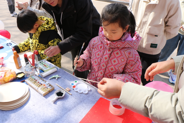 校园另一角,团扇、颜料、玩具,各式各样的礼品与活动令荟萃广场逐渐人声鼎沸。“你好,我们是文法青年志愿者协会,想要写毛笔字或者画团扇吗?”公益市集上,志愿者们热情地邀请道。翠墨山水、大叶芭蕉、毛笔福字,小朋友、大学生、家长……大家纷纷挥毫泼墨。丰富且古色古韵的活动丰富了同学们的校园生活,为整个市集添上浓墨重彩的一笔。活动现场,志愿者们忙碌的身影成为了一道亮丽的风景线。他们穿梭在人群中,时而为参与者递上毛笔,时而为他们调整画纸,时而解答关于传统文化的疑问。“没想到我们的摊位会这么受欢迎,参与者各个年龄阶段都有。而且一些同学的随笔创作水平很高,也是让大家非常惊叹。看到这么多朋友喜欢我们的活动,再辛苦也值得。”摊位负责人柳经鸣感叹说。