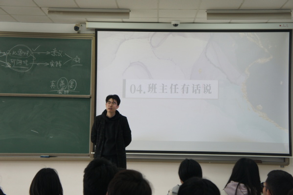 班会最后,班主任老师徐济宽询问同学们的学习状况与学术困惑,并就同学们的专业学习与生涯规划问题做出解答。他向同学们的身体健康表示关切,希望同学们在努力学习的同时保持身心健康,拥有一段有乐趣、有收获、有意义的大学生活。