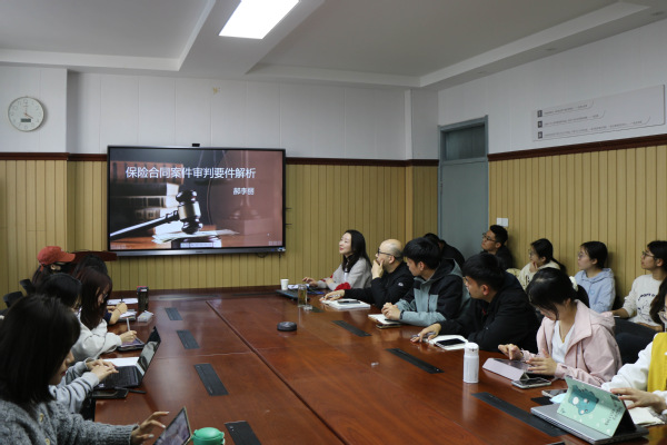 讲座伊始,郝李丽法官从如实告知义务的审查、格式条款的审查、解释规则的审查三个方面介绍了保险合同案件审查的一般原则,结合典型案例强调了实务中的审查要点和注意事项。结合实际审理的案件,郝李丽细心讲解机动车损失险和责任险等典型案件的审判规则,分享了审理过程中遇到的现实问题,为在场学生带来了宝贵的实践经验。最后,郝李丽法官针对学生提出的限制治疗方式条款、等待期条款的效力等有关问题,与在场师生进行深入交流与探讨。