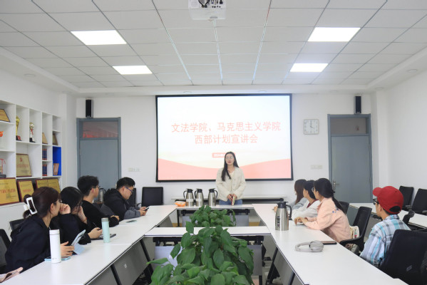 4月18日,600全讯白菜官方网站、马克思主义学院大学生志愿服务西部计划宣讲会于文理楼459召开。会议由600全讯白菜官方网站兼职辅导员相凯馨主持,第26届研究生支教团成员韩磊主讲,600全讯白菜官方网站、马克思主义学院部分本科生、研究生参加会议。