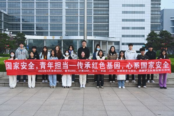 为深入学习习近平新时代中国特色社会主义思想,宣传贯彻党的二十大精神,4月15日,法学2202音乐2202、计算2201、石工(卓越)2207、物探2202团支部联合国旗护卫队、翰墨飘香书画社、地球科学与技术学院举办“赓续红色基因,献礼祖国华诞”主题春季国旗下演讲升旗仪式。