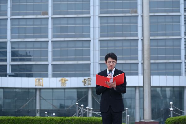 礼毕,围绕党的二十大精神及党领导青年运动的光辉历程,优秀共青团员代表王圣钧结合个人学习、工作经历,面向参加仪式的全体人员进行演讲汇报,激励青年要刻苦学习,努力奋斗、争做饱含爱国主义情怀和昂扬向上精神的时代先锋。
