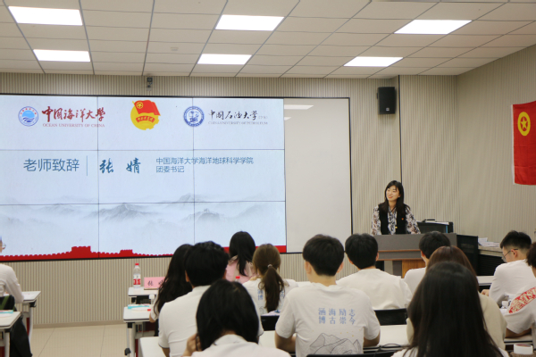 中国海洋大学海洋地球科学学院团委书记张婧致辞 曹琪琪摄