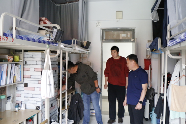 检查期间,相关职能部处领导与学院党委副书记、辅导员到宿舍楼逐层逐间宿舍进行检查,重点针对宿舍内是否存在违规电器、学生是否有私接乱拉电线、吸烟等安全隐患进行排查,在发现问题的同时指导整改。党委学生工作部(武装部)副部长张程表示,经检查,学院学生宿舍环境总体整洁舒适、用电规范,宿舍文化氛围较好,但也存在部分个人内务不整、物品乱堆乱放等情况,学院应及时督促整改,即查即改、持续监管。走访宿舍期间,检查人员与学生细心交谈,了解和掌握学生在宿舍学习和生活的各方面状况,听取学生的意见和建议,同时提醒学生注意宿舍安全卫生增强宿舍用电、用水、防火、防盗等方面的安全意识,师生关系在亲切交流中更进一步。