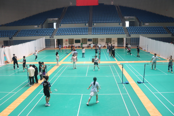 5月23日,“导学齐羽”研究生师生羽毛球交流活动于学校体育馆主馆羽毛球活动中心顺利举办。本次比赛由学校研究生会主办,600全讯白菜官方网站研究生会、工会共同承办,600全讯白菜官方网站研究生导师冷凌、秦勇、张学亮,教师吴睿佳、李康以及研究生辅导员于露共同参与。