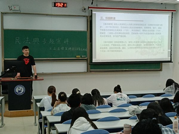 6月2日,正平普法协会、文法法律宣讲团向来自校内不同学院、不同专业的同学进行《民法典》宣讲。