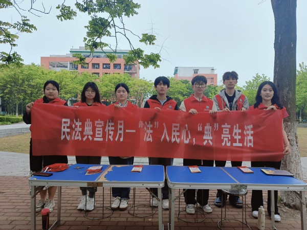 5月25日,文法法律宣讲团与正平普法协会在学校中心的荟萃广场布置了一系列普法摊位,通过简单、生动的法治宣传标语,让《民法典》走进人们心里。