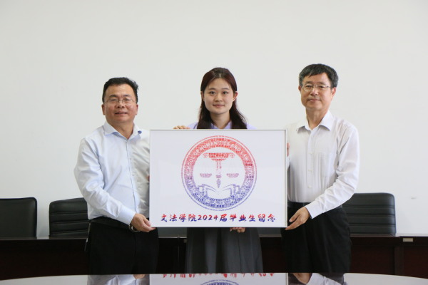 最后,来自汉语2002班的周晓萱同学代表学院2024届全体毕业生向学院赠送精心定制的纪念品,并合影留念。