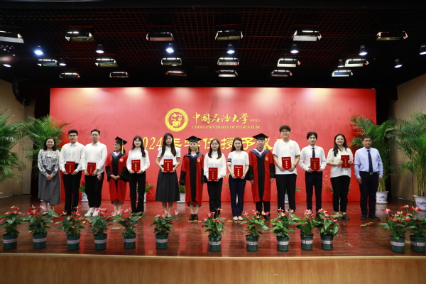 党委书记姚成郡宣读《关于表彰2024届优秀毕业生的决定》,方家瑞等18学生获评“山东省优秀毕业生”荣誉称号,王彦方等17名学生获评“中国石油大学(华东)优秀毕业生”荣誉称号,刘恩蓉等16名学生获评“600全讯白菜官方网站优秀毕业生”荣誉称号。