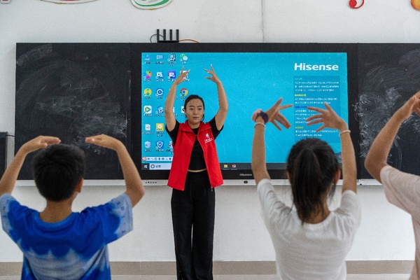 “习法先锋”实践队成员上课表演舞蹈 陈书雅摄