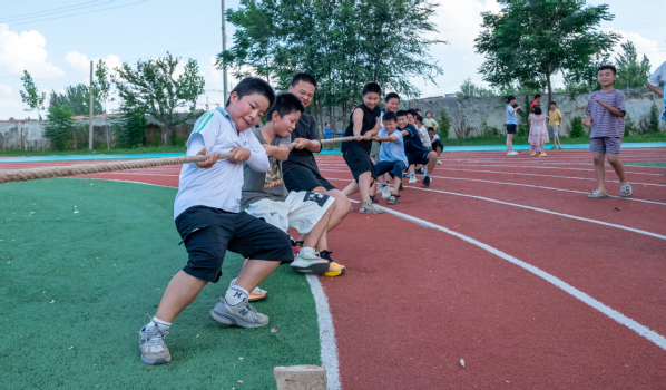 活动当天,阳光明媚,微风不燥,育英中学的操场上热闹非凡。中国石油大学(华东)星光支教队的队员们精心策划了拔河、一二三木头人、丢沙包、接力折返跑等既富有趣味性又考验团队协作能力的运动项目,吸引了众多学生参与其中。