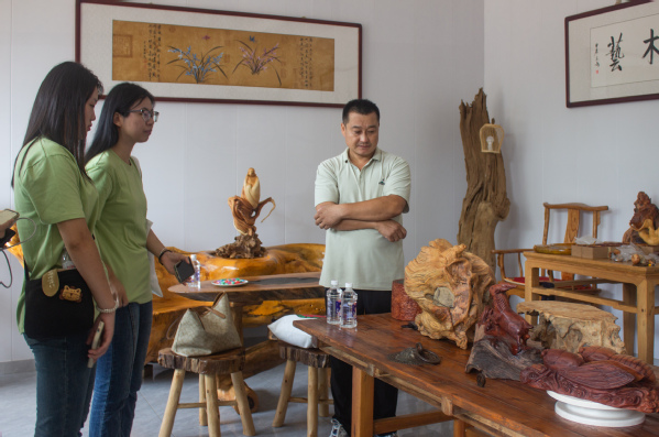 实践队员与木雕传承人惠军合影 周琛雨摄